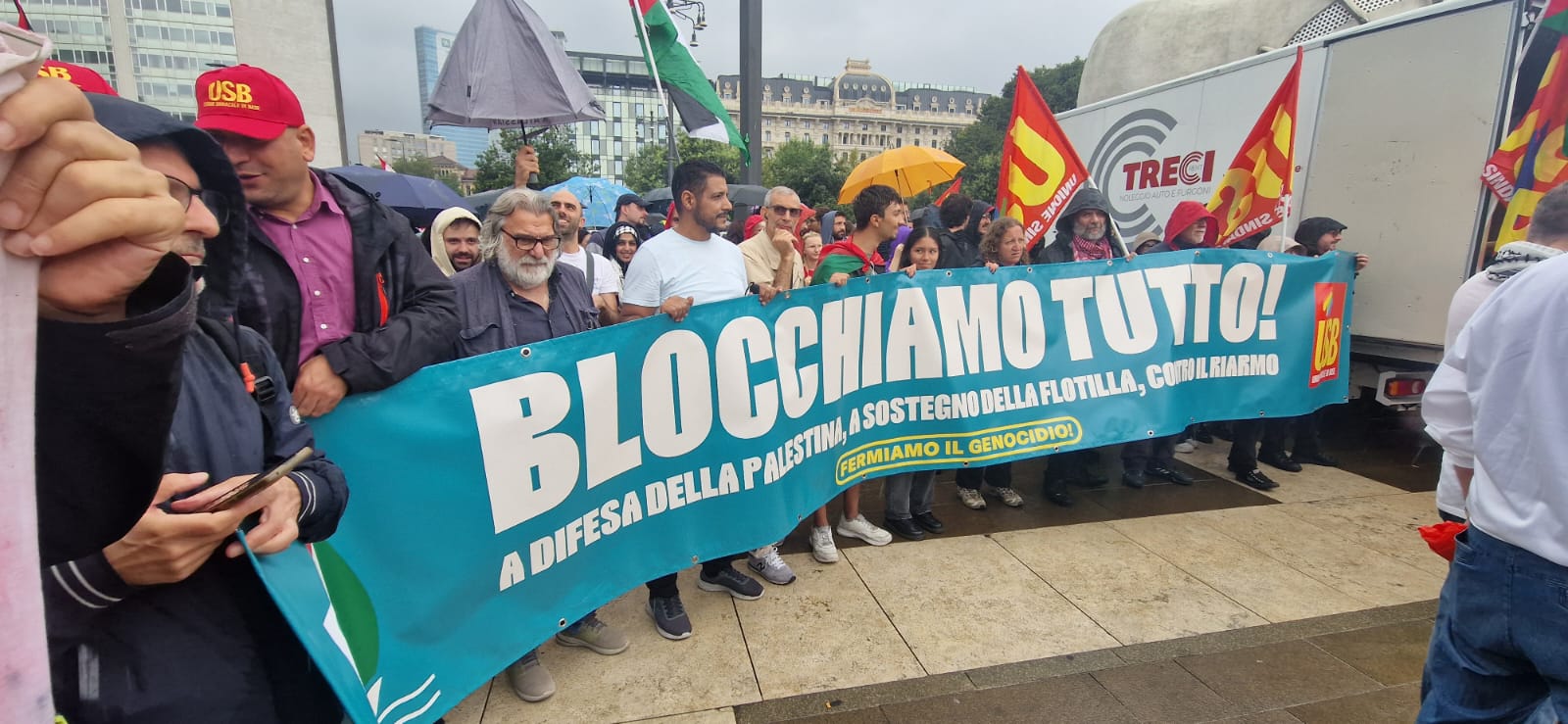 Anche MIlano, così come in tutte le altre città dove l’USB è presente, lo scopo è quello di paralizzare le città per dare un segnale forte e visibile di vicinanza al popolo palestinese, per fermare il genocidio, per esprimere solidarietà ai componenti della Flotilla, attualmente nelle mani grondanti di sangue dell’esercito genocida di israele