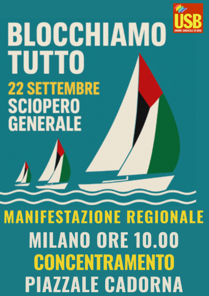 Ieri 15 settembre, presso il CS Lambretta, durante una riunione tra tutte le realtà che sostengono la causa Palestinese (Global Movement to Gaza), l'USB ha presentato la proposta di un corteo unitario che attraversi la città e che sia coerentecon quanto deciso nel corso dell'Assemblea tenutasi a Genova lo scorso 11 settembre, insieme a CALP e Global Sumund Flotilla: Blocchiamo tutto! Così come nelle città di mare si bloccheranno i varchi di accesso, così in quelle non costiere si cercherà di bloccare la circolazione dei treni, a partire dallo sciopero del personale ferroviario.