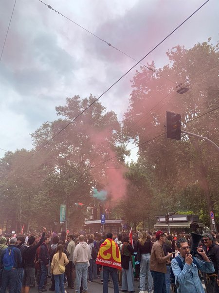 A centinaia di migliaia, lavoratrici, lavoratori, semplici cittadini, tra cui una maggioranza schiacciante di giovani - che dentro e fuori le scuole e le università, stanno svolgendo un ruolo importantissimo - hanno attraversato Milano, stavolta dal centro fino all’estrema periferia, facendo profondamente proprio il dovere morale di bloccare tutto, spingendosi senza esitazione fin dentro la tangenziale, cuore della viabilità milanese, paralizzandola per ore.