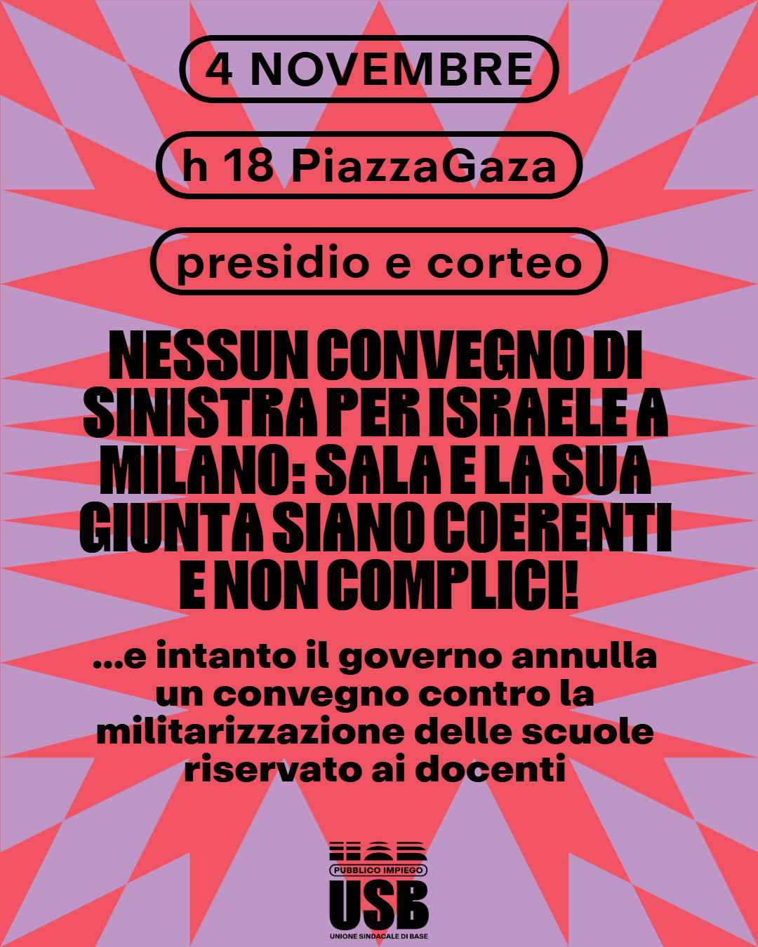 Quello dell’amministrazione “di sinistra” del sindaco Sala appare in continuità con l’altro fatto gravissimo, di stampo fascista, messo in atto dal governo “di destra”, che ha deciso di annullare un corso destinato ai docenti delle scuole pubbliche dal titolo “4 novembre, la Scuola non si arruola”, organizzato dal CESTES in collaborazione con l’Osservatorio contro la militarizzazione della scuola.