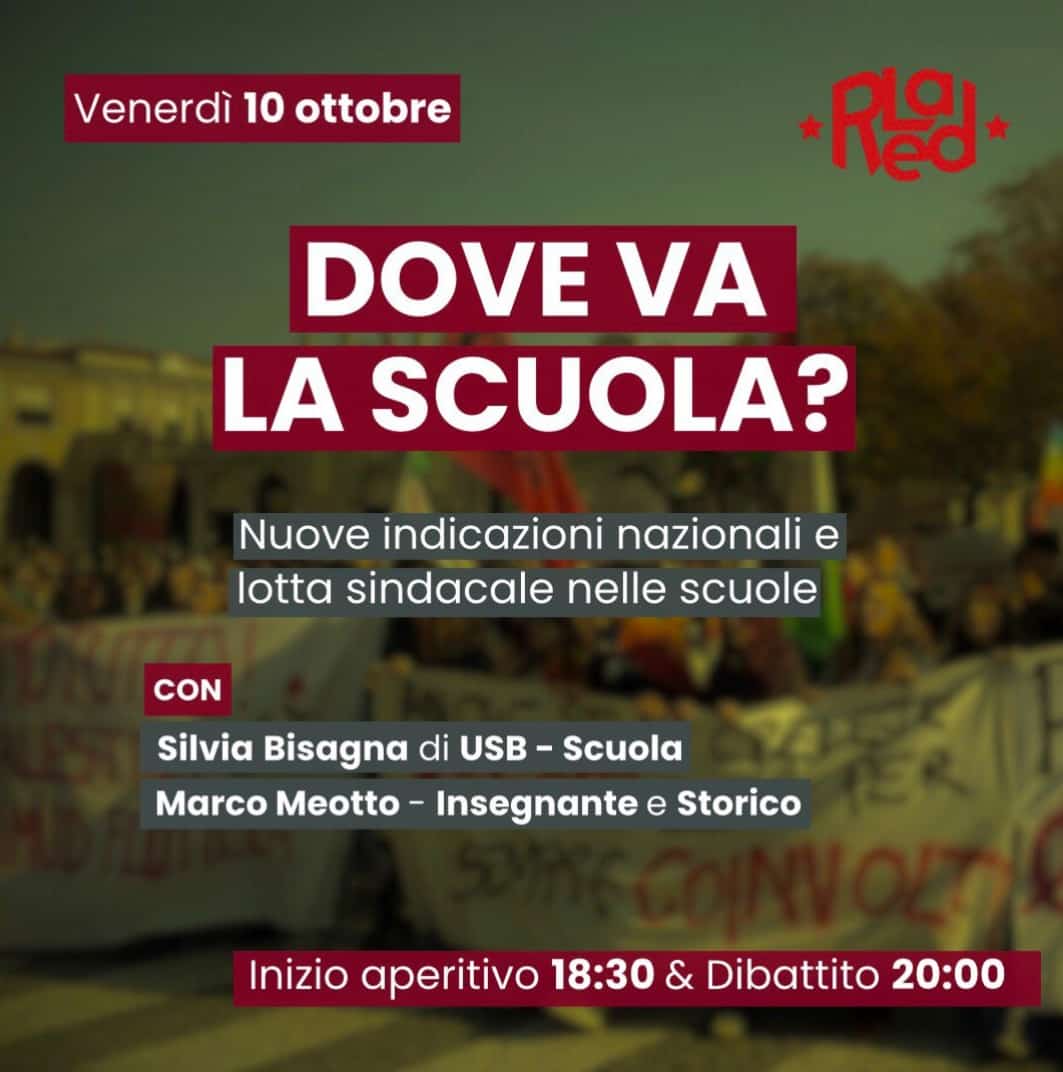 “Dove va la scuola” è il titolo dell’incontro-dibattito organizzato da Potere al Popolo, in programma a Bergamo venerdì 10 ottobre, a partire dalle ore 18:30, presso la Casa del Popolo LaRed, in via San Bernardino 18.